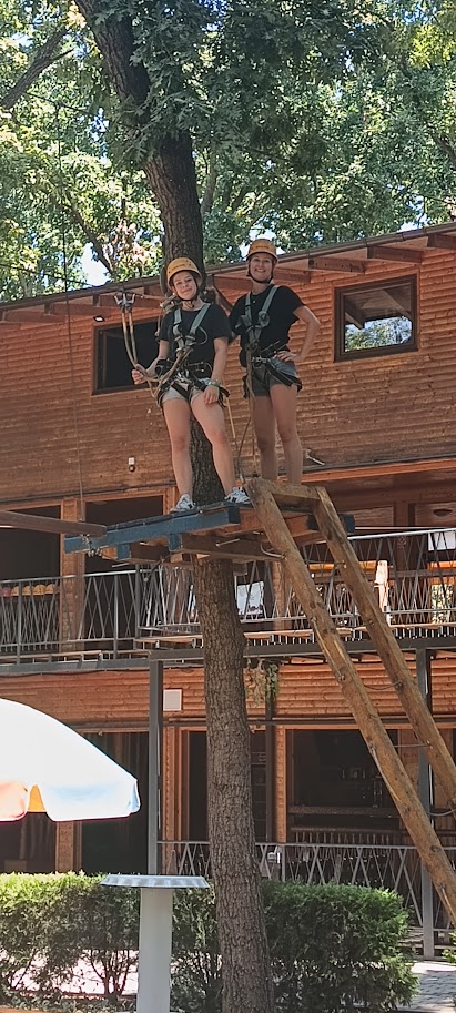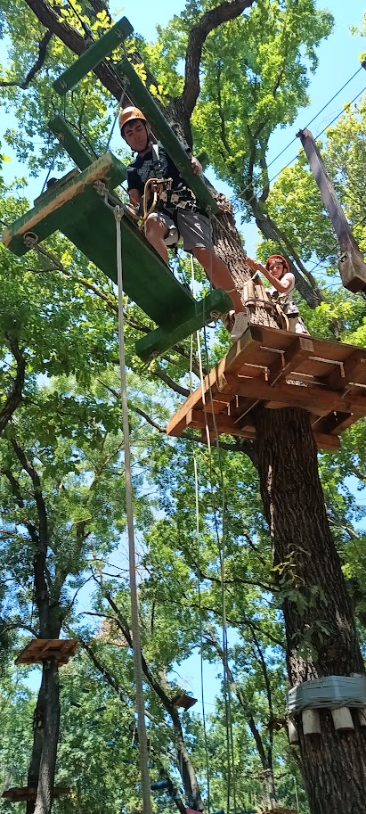 • Took on high ropes, obstacles, and zip lines at a treetop adventure park